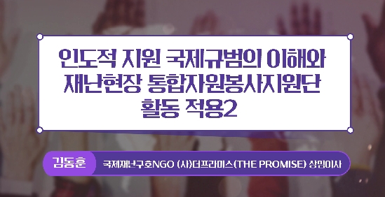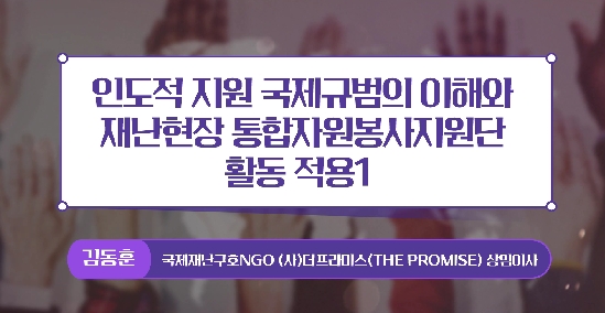 인도적 지원 국제규범의 이해와 재난현장 통합자원봉사지원단 활동 적용 | 1편 | 김동훈 국제재난구호NGO (사)더프라미스 상임이사