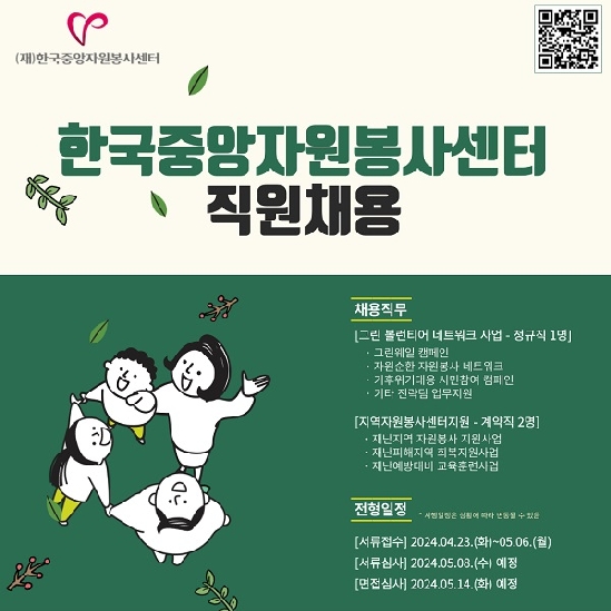 2024년 (재)한국중앙자원봉사센터 직원채용(정규직/계약직) 공고