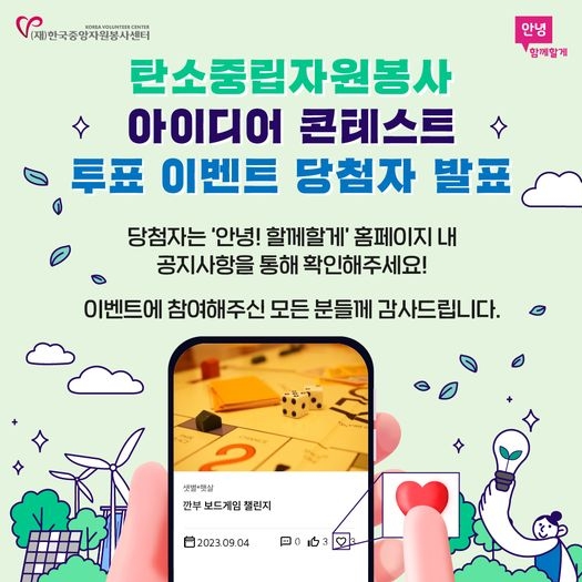 탄소중립자원봉사 아이디어 콘테스트 투표 이벤트 당첨자 발표