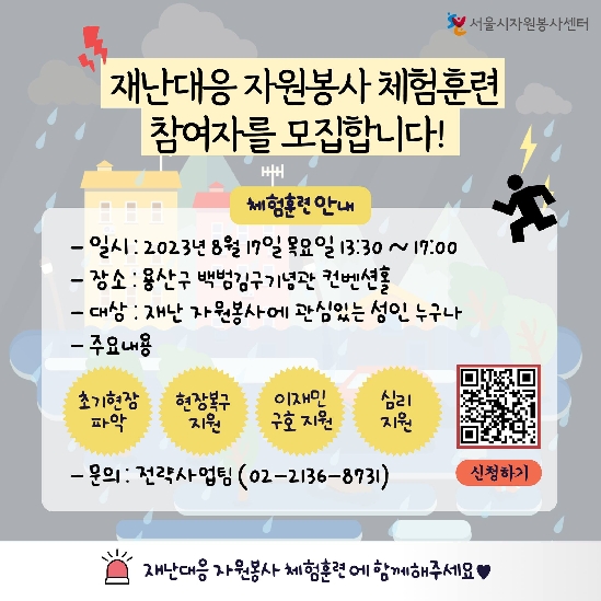 재난대응 자원봉사 체험훈련 참여자를 모집합니다.
