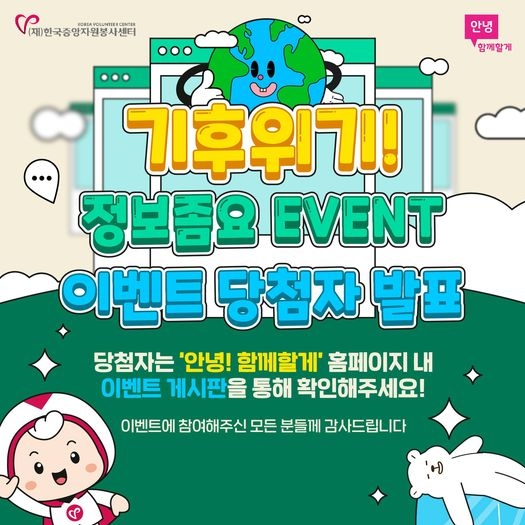 [안녕! 함께할게] 기후위기 정보좀요 이벤트 당첨자를 발표합니다