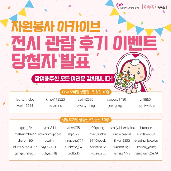 자원봉사 아카이브 전시관람 이벤트 당첨자 발표