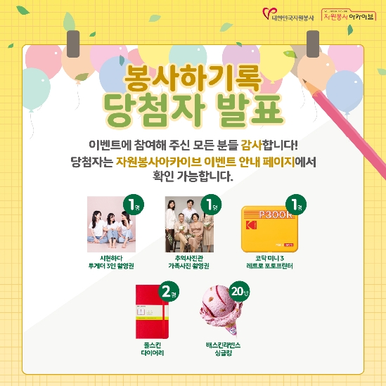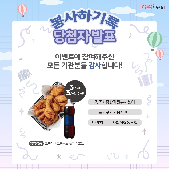 봉사하기록 기관 참여 이벤트 당첨자 발표