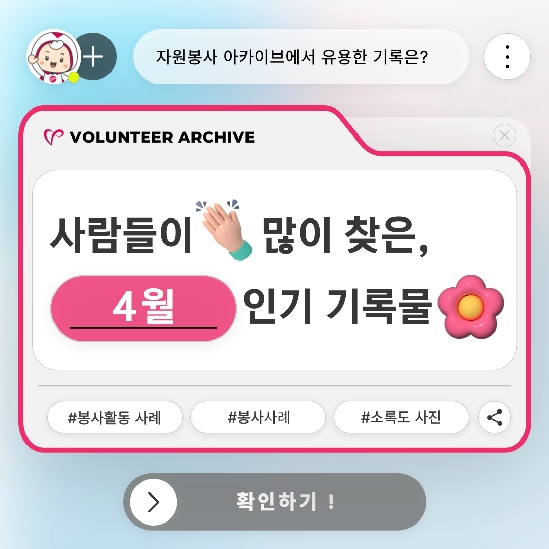 ['자원봉사 아카이브' 속 4월 인기 기록물 같이 볼까요 ?]