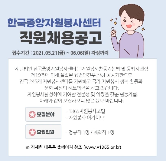 한국중앙자원봉사센터 직원 채용공고