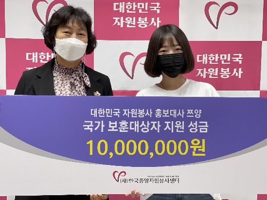대한민국 자원봉사 홍보대사 쯔양 국가 보훈대상자 지원 성금 기탁