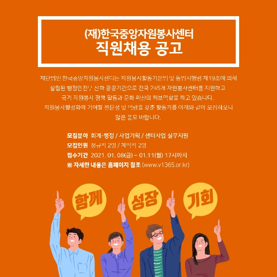 한국중앙자원봉사센터 신규 직원 채용 공고