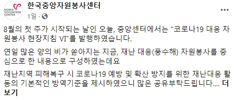코로나19 대응 자원봉사 현장지침 Ⅵ 발행