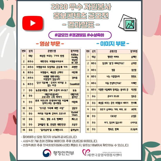 2020 우수 자원봉사 홍보콘텐츠 공모전 결과발표