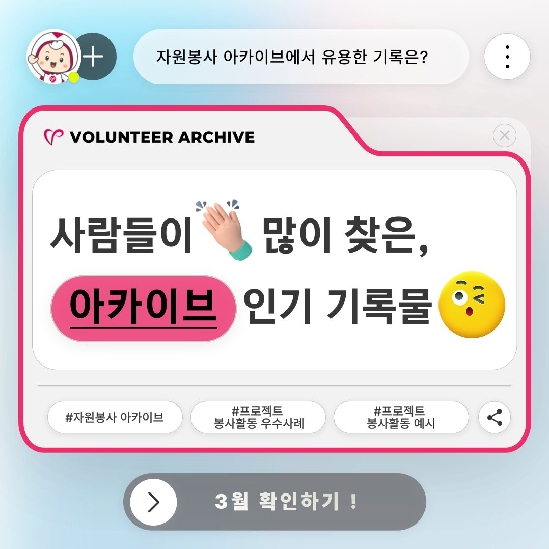 ['자원봉사 아카이브' 속 3월의 인기 기록물, 같이 볼까요 ?]
