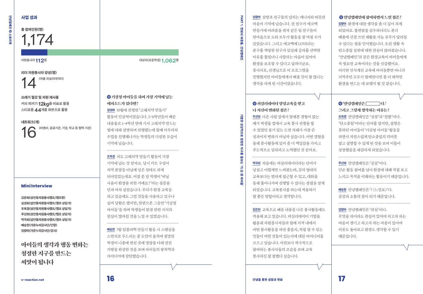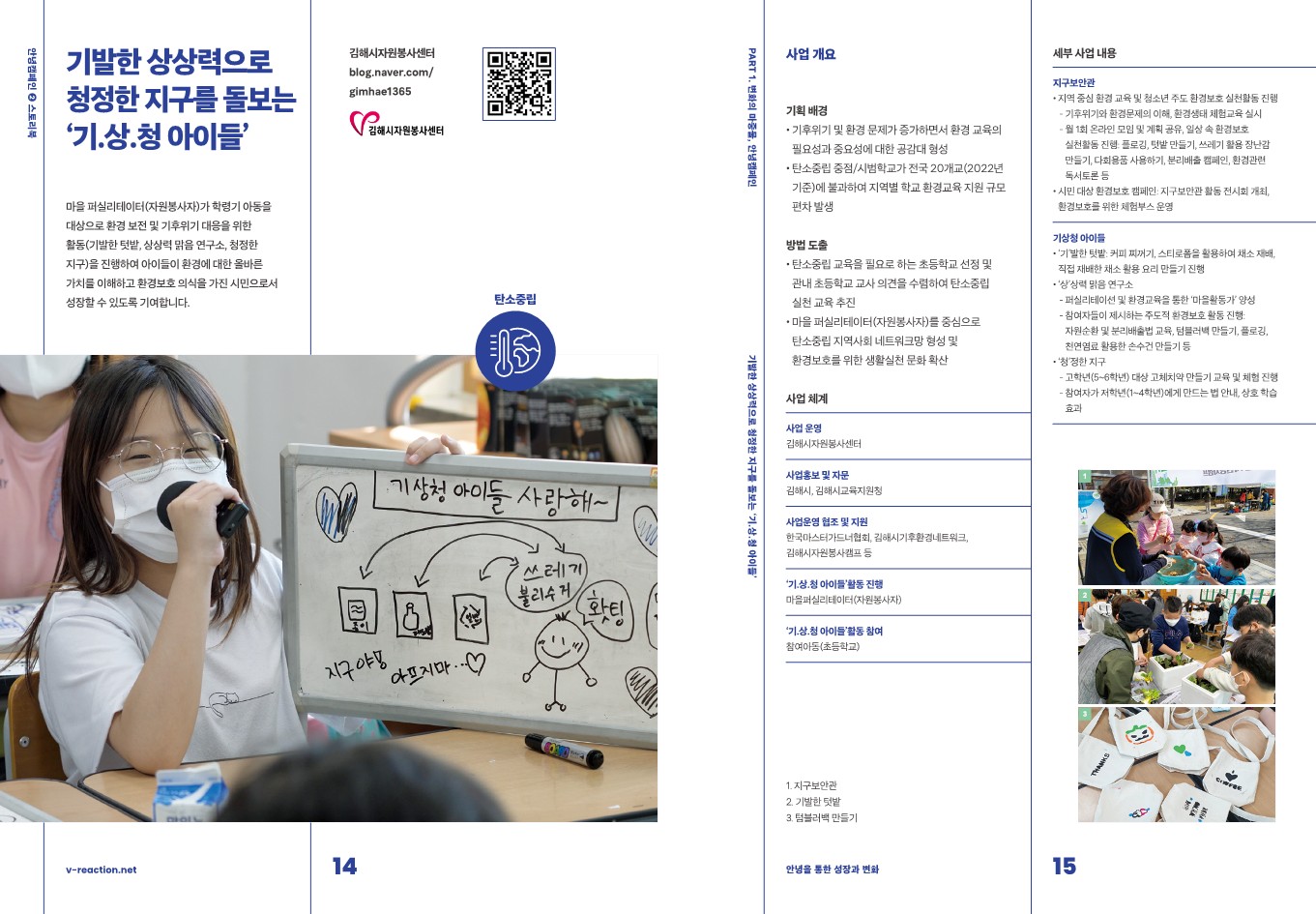 임팩트 스토리 [안녕캠페인] 기발한 상상력으로 청정한 지구를 돌보는 ‘기.상.청 아이들’ 관리자 2022.11.17 450 이전글 [안녕캠페인] 기후위기 대응 플랫폼, “안녕! 나의 마을” 목록 다음글 [안녕캠페인] '안녕! 초록 자전거길' 함께 만들어 가는 자전거 타기 좋은 마을 프로젝트