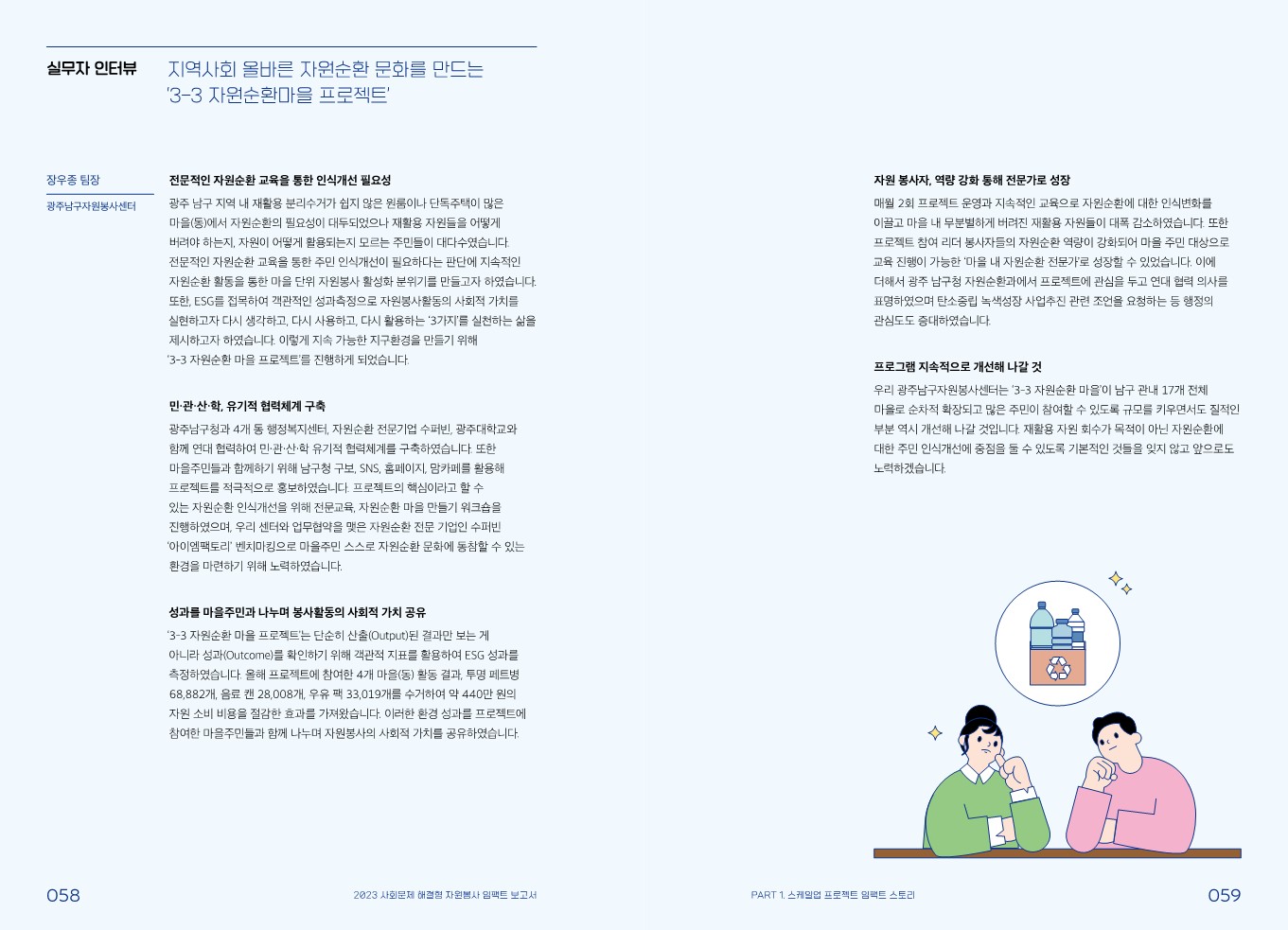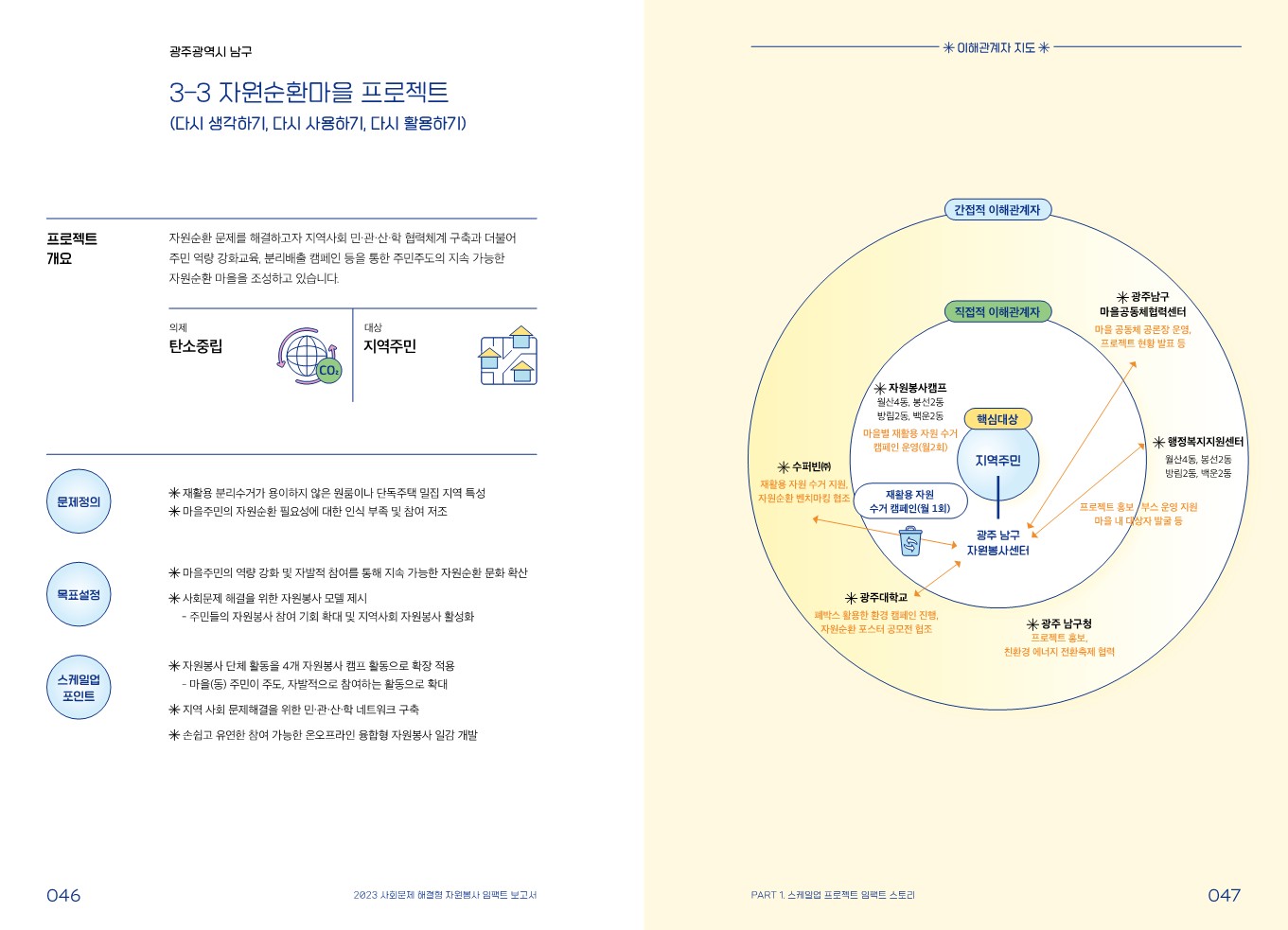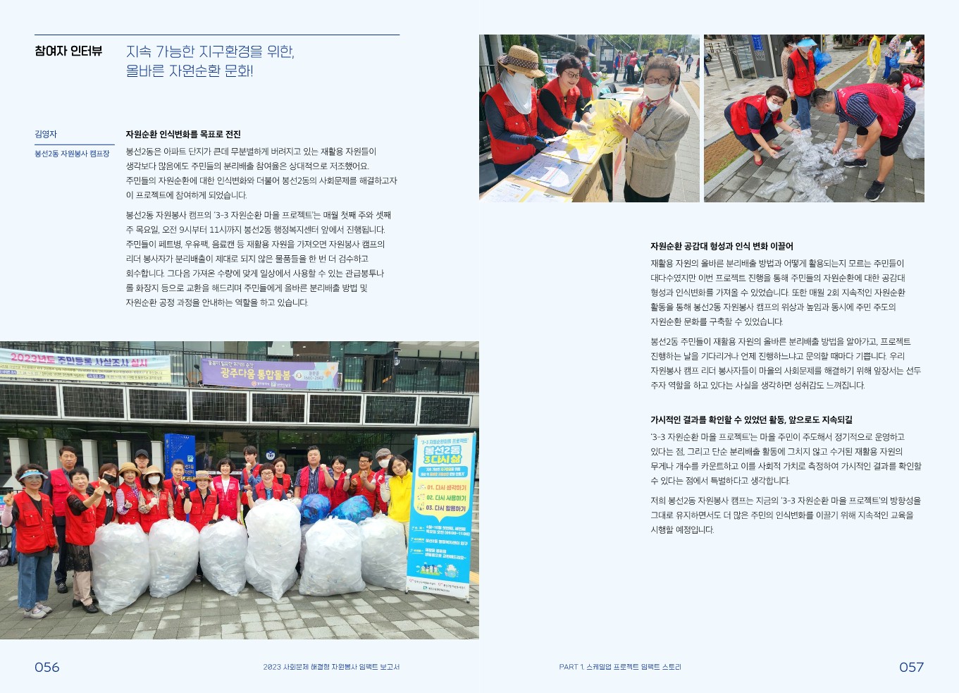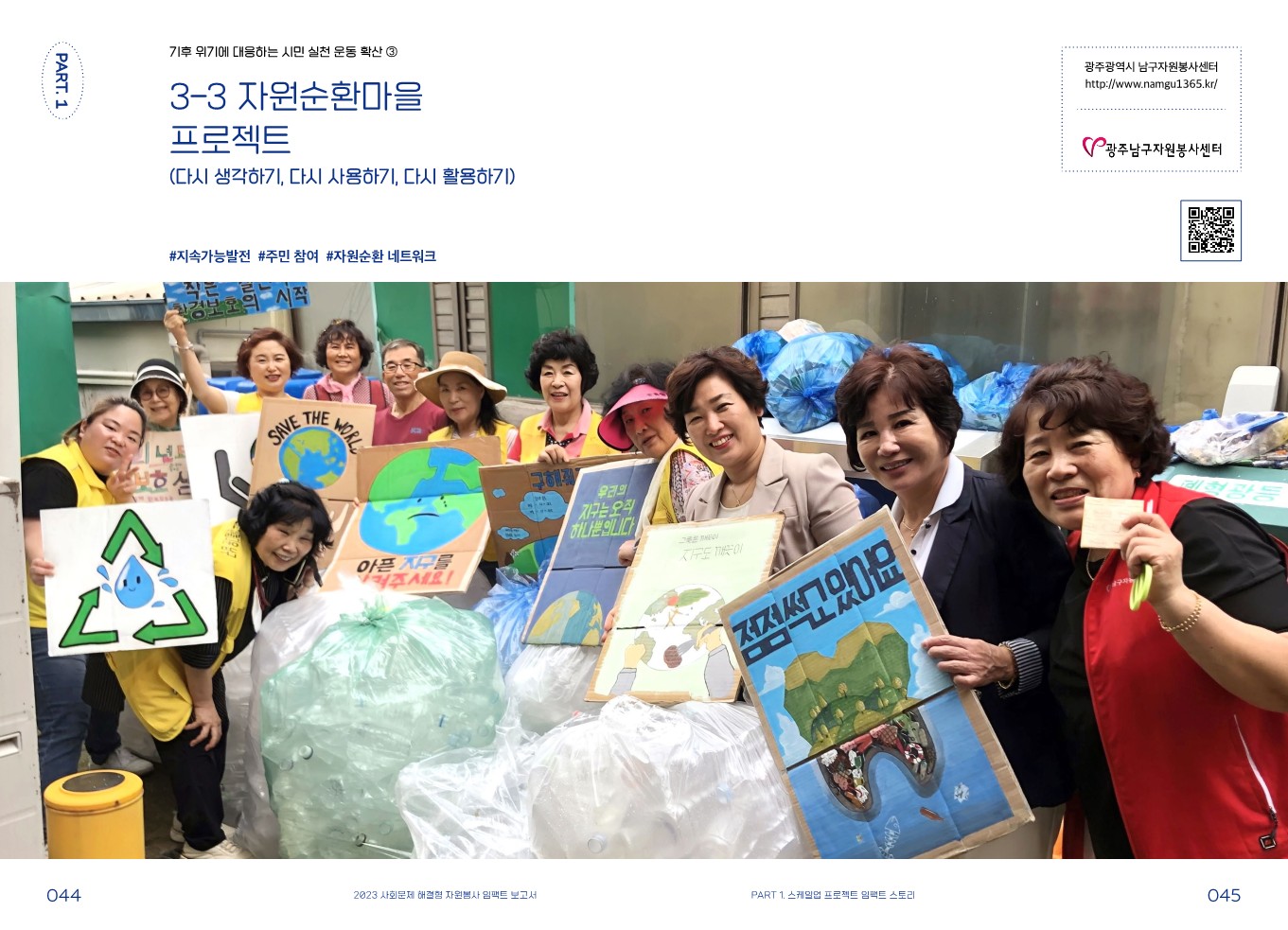 임팩트 스토리 [스케일업 프로젝트] 3-3 자원순환마을 프로젝트(다시 생각하기, 다시 사용하기, 다시 활용하기) 관리자 2024.02.08 401 이전글 [스케일업 프로젝트] 동구동락(東區同樂) 목록 다음글 [스케일업 프로젝트] 안녕, 대구! 시민이 안심하는 기후 위기 적응 도시 대구 만들기