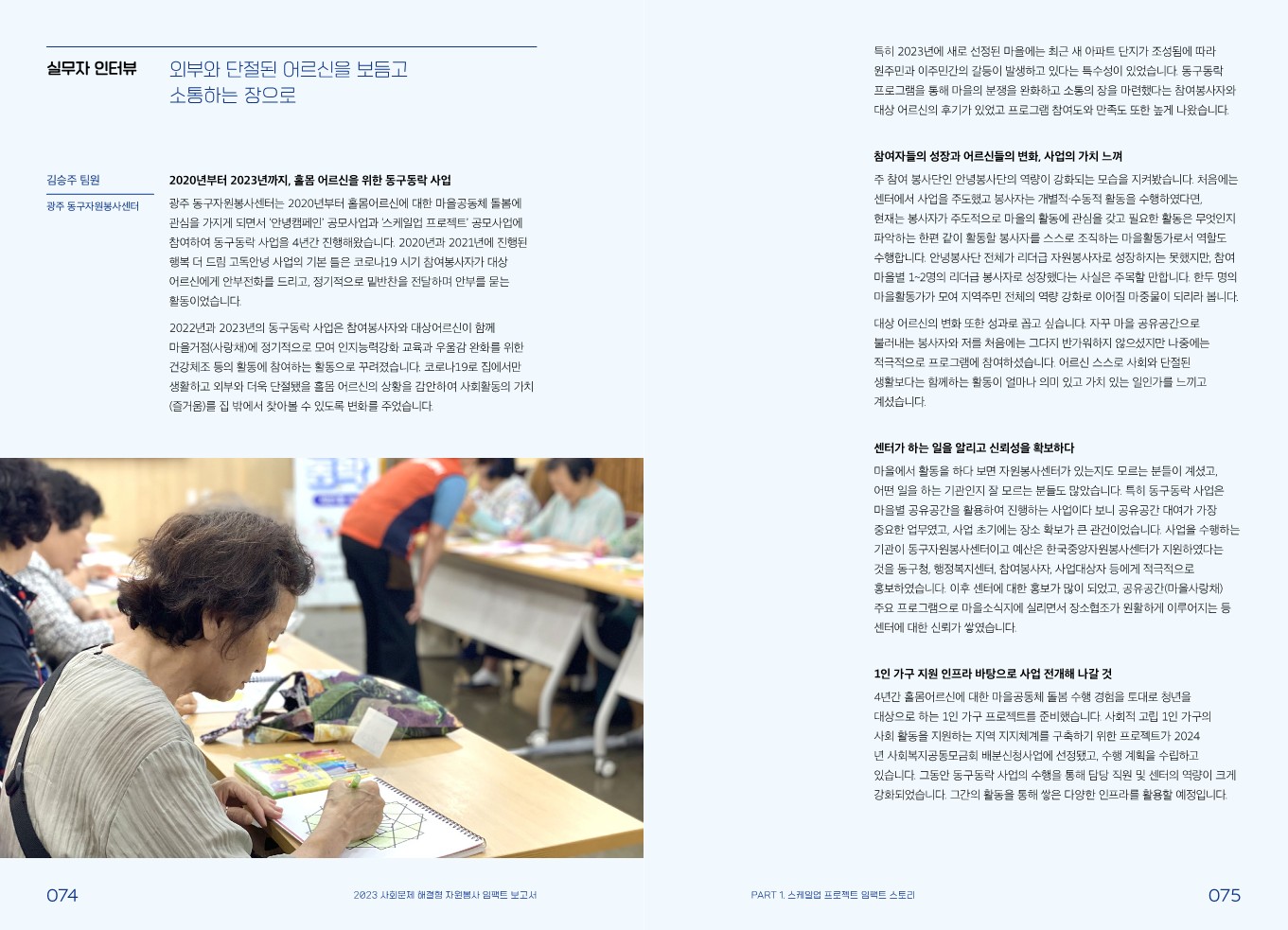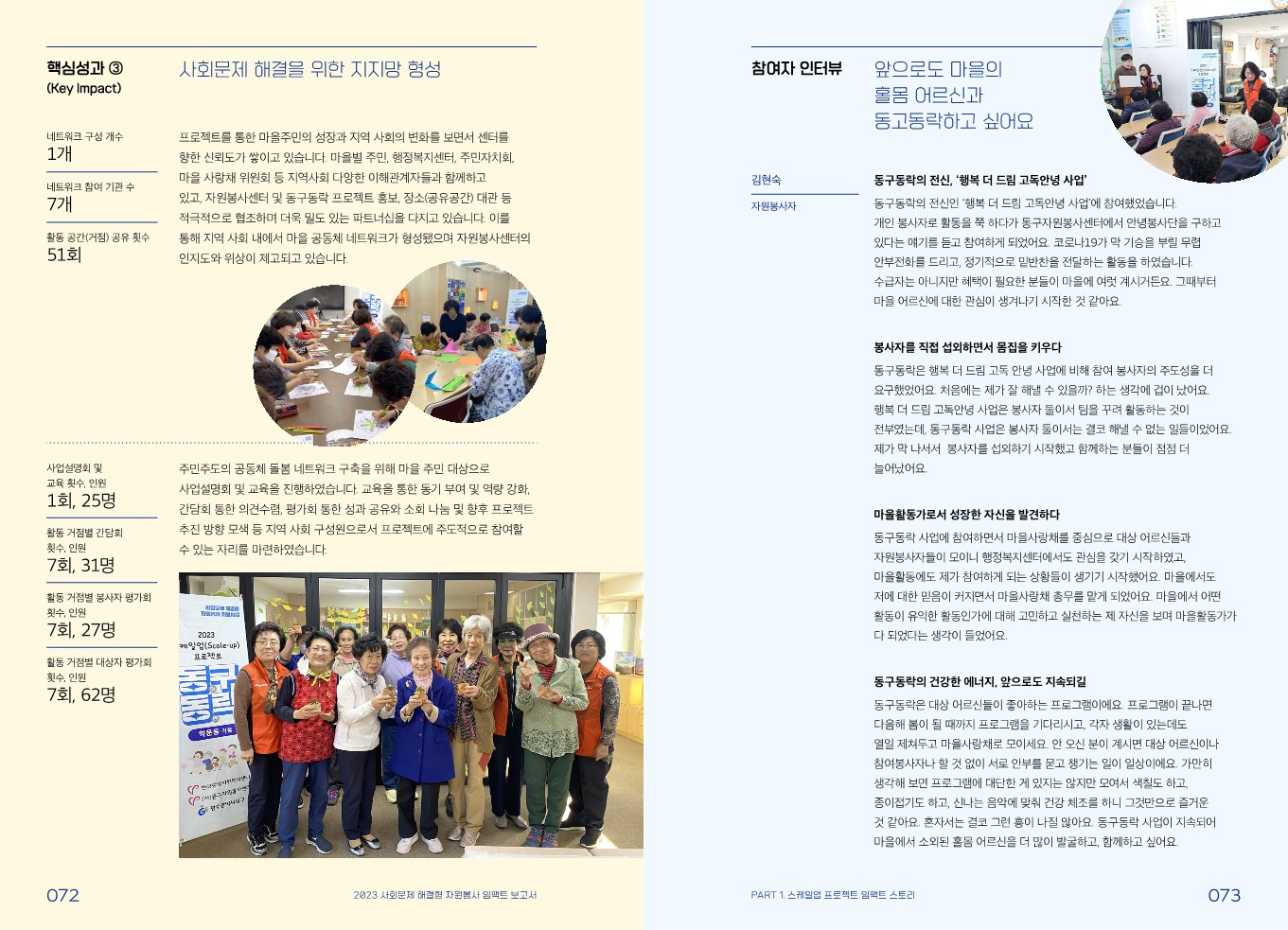 임팩트 스토리 [스케일업 프로젝트] 동구동락(東區同樂) 관리자 2024.02.08 390 이전글 [스케일업 프로젝트] 찬찬찬(饌) 나눔 용기(容器)내 v3 지역사회 돌봄 리빙랩 목록 다음글 [스케일업 프로젝트] 3-3 자원순환마을 프로젝트(다시 생각하기, 다시 사용하기, 다시 활용하기)