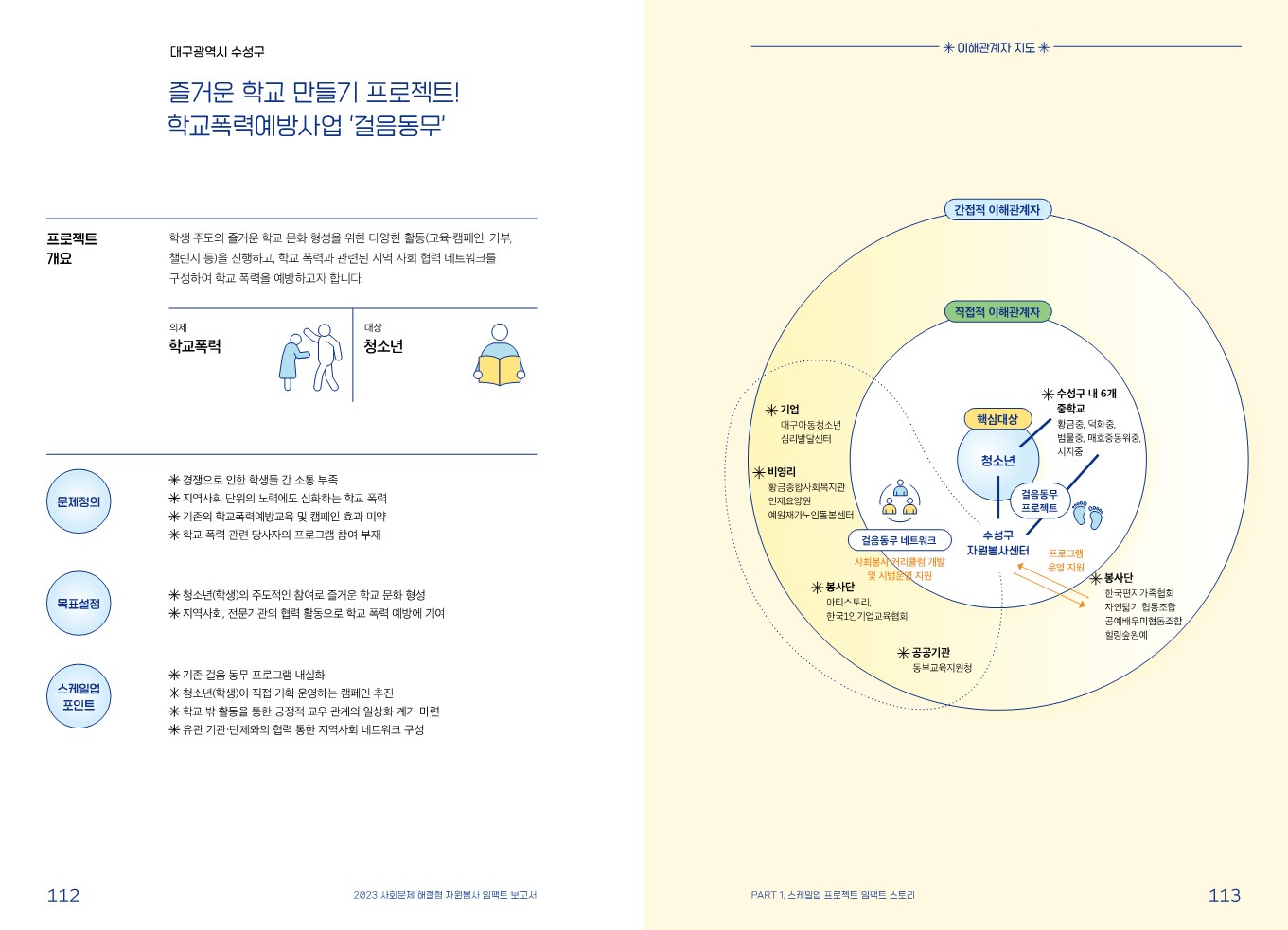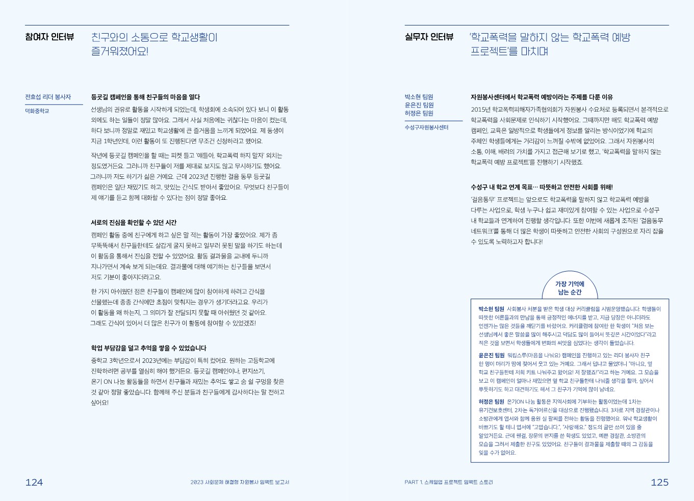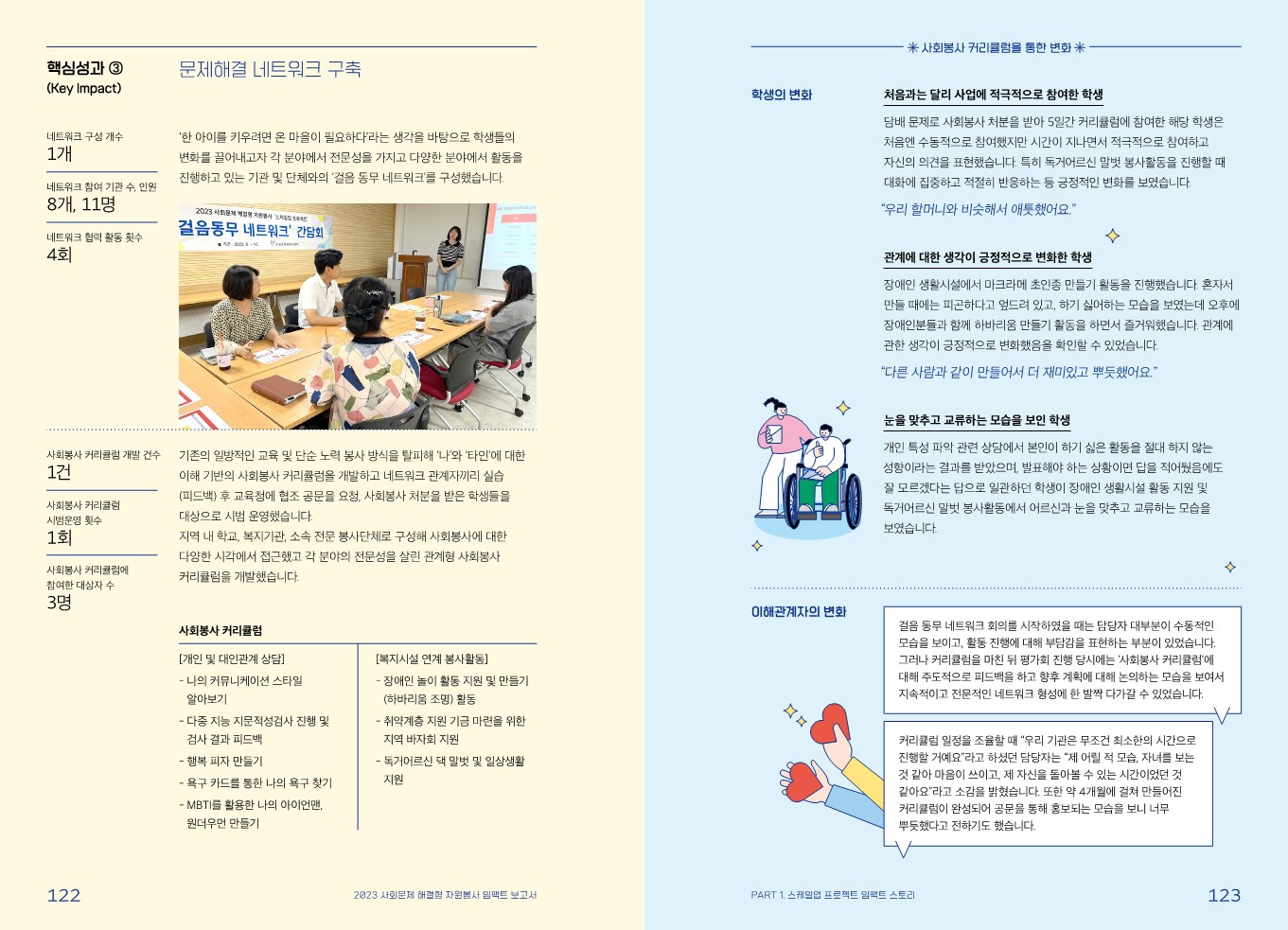 임팩트 스토리 [스케일업 프로젝트] 즐거운 학교 만들기 프로젝트! 학교 폭력 예방 사업 ‘걸음 동무’ 관리자 2024.02.08 428 이전글 [스케일업 프로젝트] 대학가 쓰레기 불법투기 개선을 위한 청년들아, 치워랍(Cheer up)! 목록 다음글 [스케일업 프로젝트] 주민 주도적 안전마을 조성 사업 '마을을, 잇(it)다(all)' : 연결하다