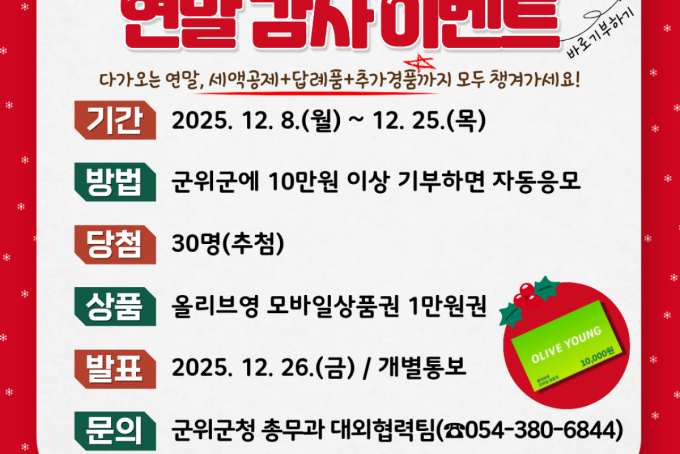[홍보] 군위군 고향사랑기부제 '연말 감사 이벤트' 안내