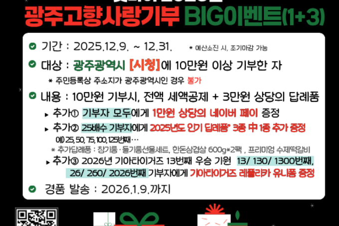 [홍보] 굿바이 2025년, 광주고향사랑기부 BIG 이벤트 안내