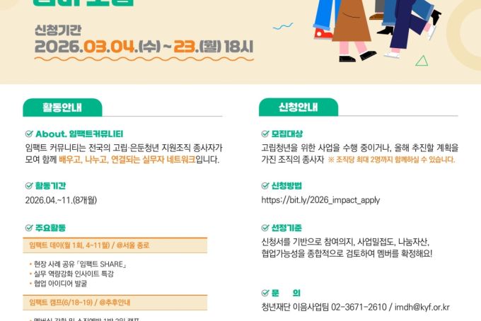 2026 고립청년 지원조직 <임팩트 커뮤니티> 멤버 모집
