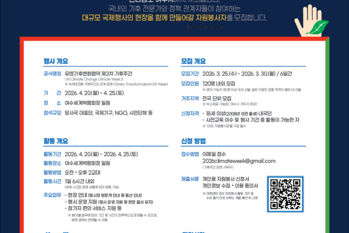 여수시 유앤기후변화협약 제3차 기후주간 자원봉사자 모집 안내