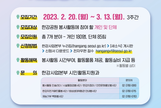 [모집] 2023 한강공원 자원봉사자 모집