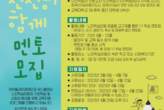[모집] 느린학습 아동을 위한 교육지원 사업 「천천히 함께 멘토」 모집 안내