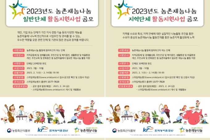 [홍보] 2023년 농촌재능나눔 일반&지역단체 활동지원사업 공모 안내
