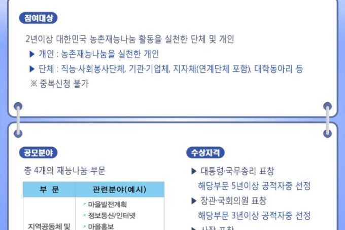 [홍보] 제4회 대한민국 농촌재능나눔 대상 수상자 모집 공모