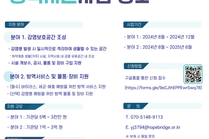 [홍보] 희망브리지 전국재해구호협회 감염병 예방을 위한 방역지원 공모사업 신청