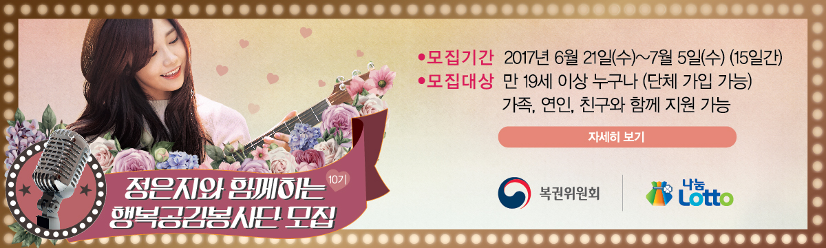 [홍보] 2017 정은지와 함께하는 행복공감봉사단 모집 - 복권위원회