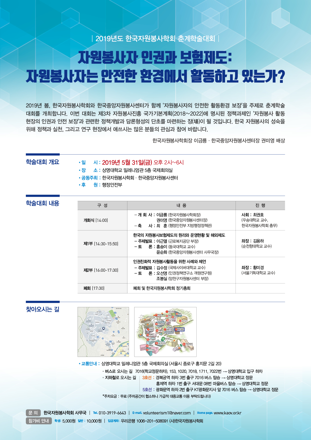 '자원봉사자의 안전한 활동환경 보장'을 주제로 춘계학술대회를 개최합니다.