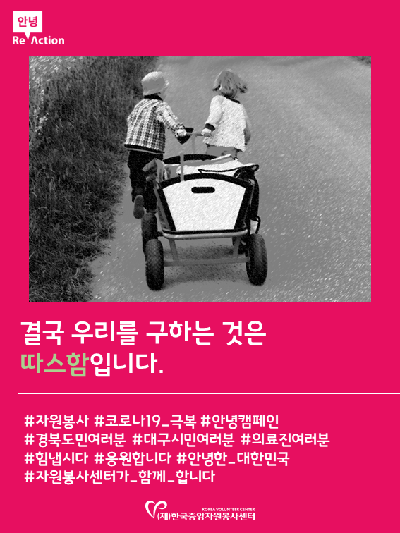 정보공유 [공유] 코로나19 관련 SNS 캠페인 참여 이미지 #1 관리자 2020.02.24 1540 이전글 [정보] 국민건강보험공단이 전하는 코로나19 확진환자 접촉시 행동 가이드 목록 다음글 [홍보] 경기도 생명사랑 자원봉사 성과 공유회 참가안내