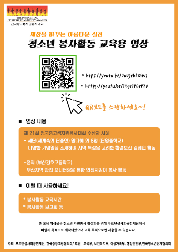 푸르덴셜사회공헌재단과 한국중등교장협의회가 공동으로 주최하고 행정안전부, 보건복지부, 여성가족부, 교육부, 한국청소년단체협의회가 후원하는