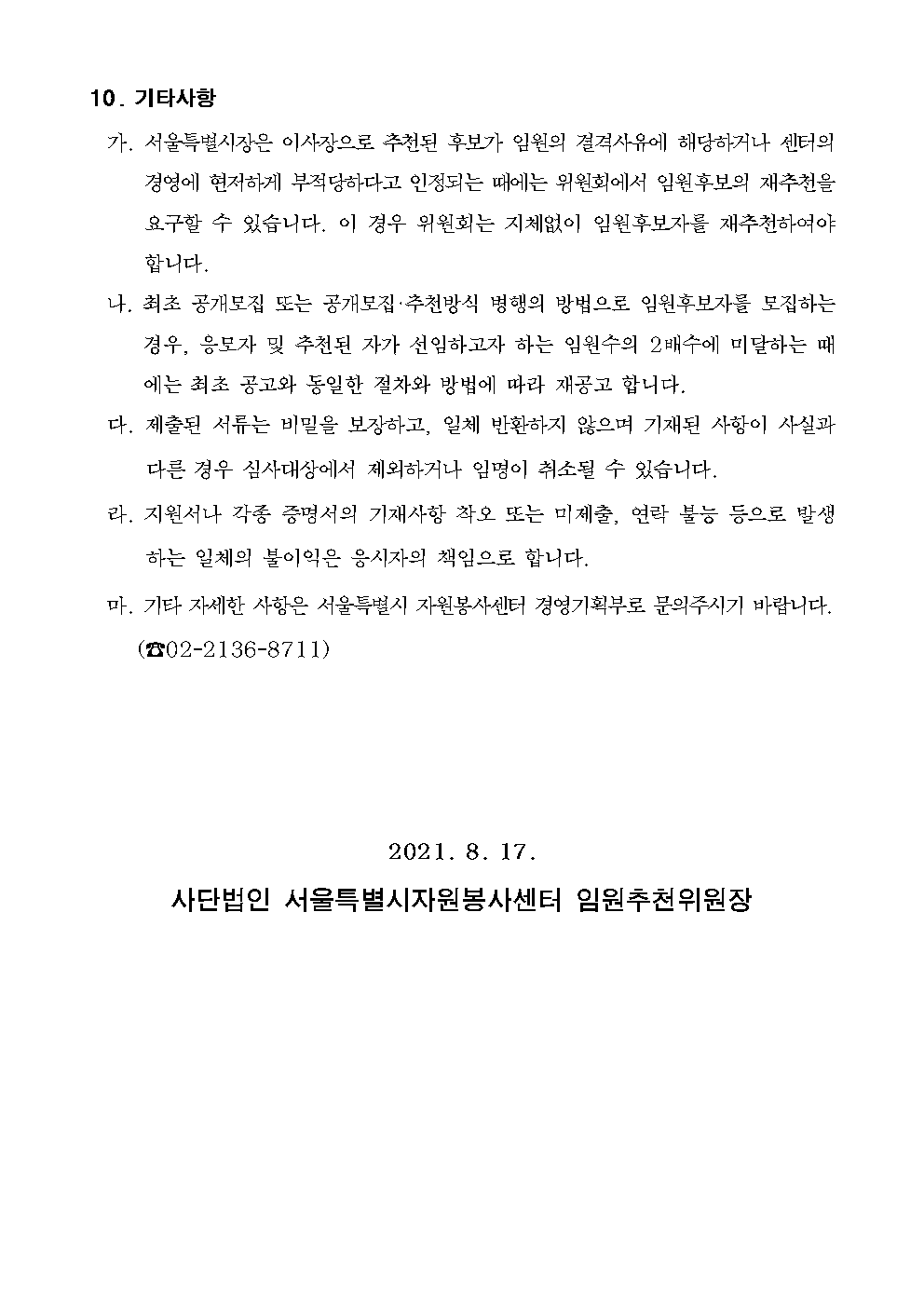정보공유 [홍보] (사)서울특별시자원봉사센터 이사장 선임 공고 관리자 2021.08.17 1741 이전글 [홍보] 2021 전국생활체육대축전 자원봉사자 모집 목록 다음글 [홍보] 제12회 태평양공익인권상 수상후보 추천