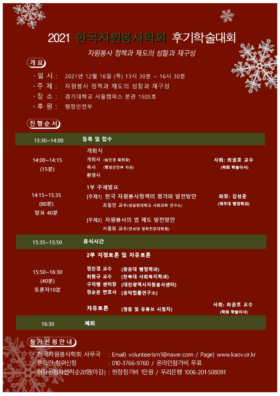 정보공유 [홍보] 2021년 (사)한국자원봉사학회 후기 학술대회 참여 안내 관리자 2021.12.15 1570 이전글 [홍보] 설 명절맞이 소외계층을 위한 1인 1나눔 실천하기 목록 다음글 [홍보] 「2021 제주시 자원봉사 만남 주간」 응원 댓글 참여