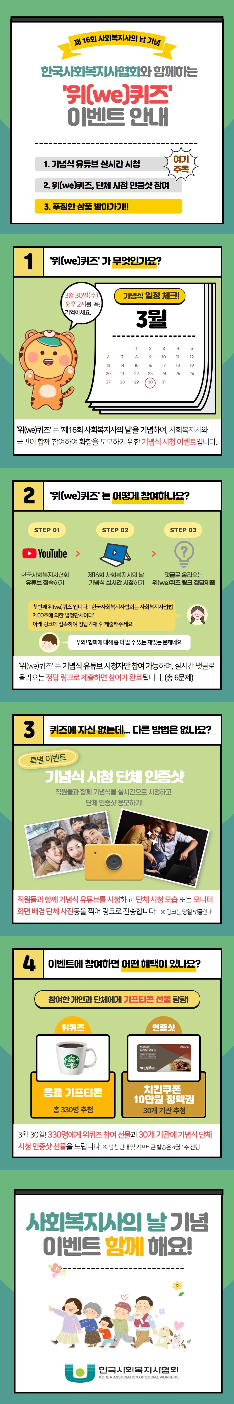 정보공유 [홍보] 제16회 사회복지사의 날 기념식 이벤트 카드뉴스 관리자 2022.03.22 1415 이전글 [홍보] 사랑의열매 2022년 신규 기획사업 공모 시행 안내 목록 다음글 [홍보] 제14회 전국 장애인 문학 공모전 안내