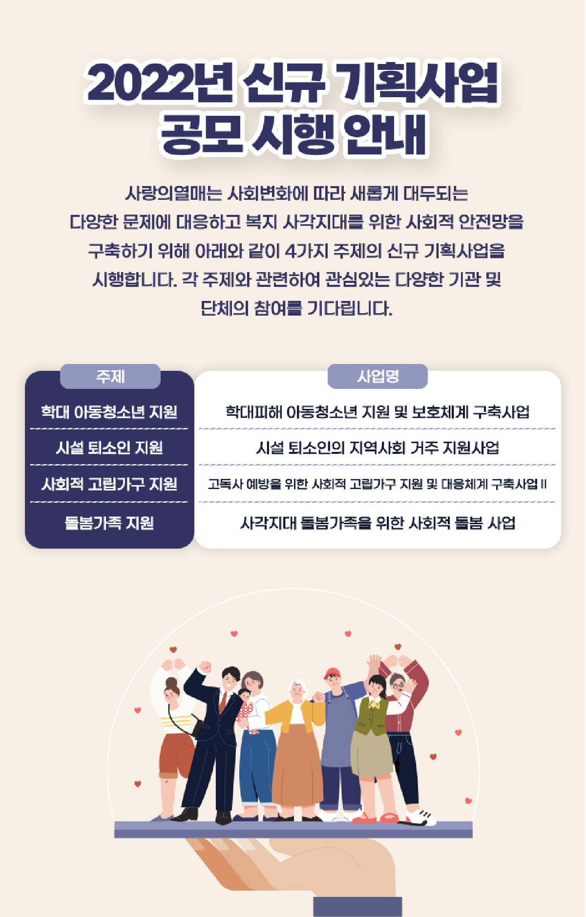 [홍보] 사랑의열매 2022년 신규 기획사업 공모 시행 안내