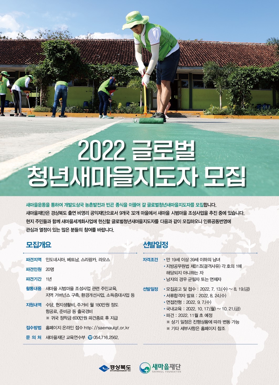 정보공유 [홍보] 2022 글로벌청년새마을지도자 추가 모집 안내 관리자 2022.07.14 1433 이전글 [홍보] 결식아동을 위한 1인 1나눔 계좌로 사랑나눔 실천하기 안내 목록 다음글 [홍보] 그린피스 플콕 참여자 모집