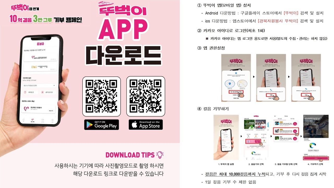 나. 참여방법 : 뚜법이앱 다운로드 후 걸음기부