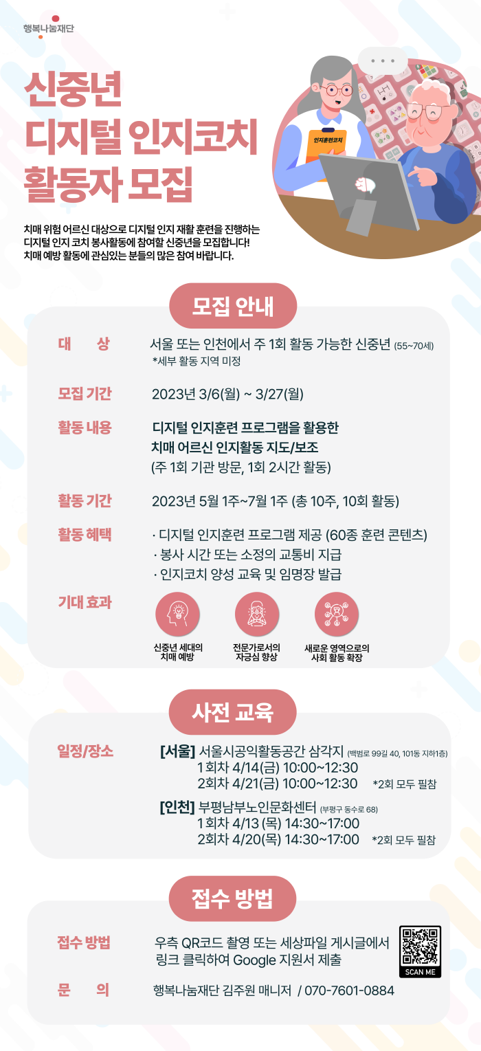 [모집] 신중년 디지털 인지코치 활동 자원봉사자 모집 안내