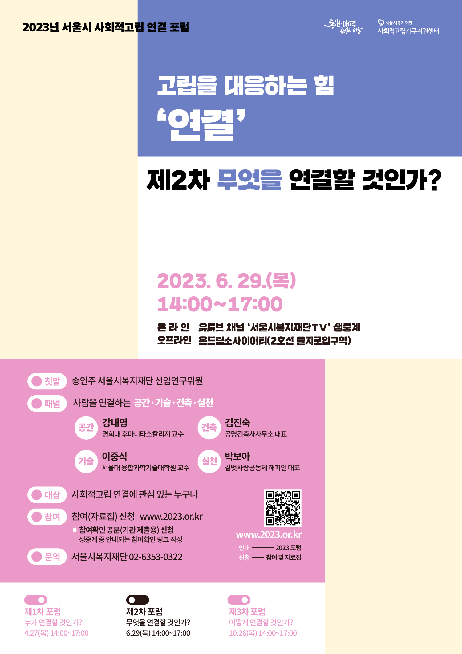 정보공유 [홍보] 2023년 제2차 서울시 사회적고립 연결포럼 안내 관리자 2023.06.20 1281 이전글 [홍보] 제14회 청소년사회참여발표대회 안내 목록 다음글 [홍보] 제1회 마리안느·마가렛 청소년 희망더하기 공모전 안내