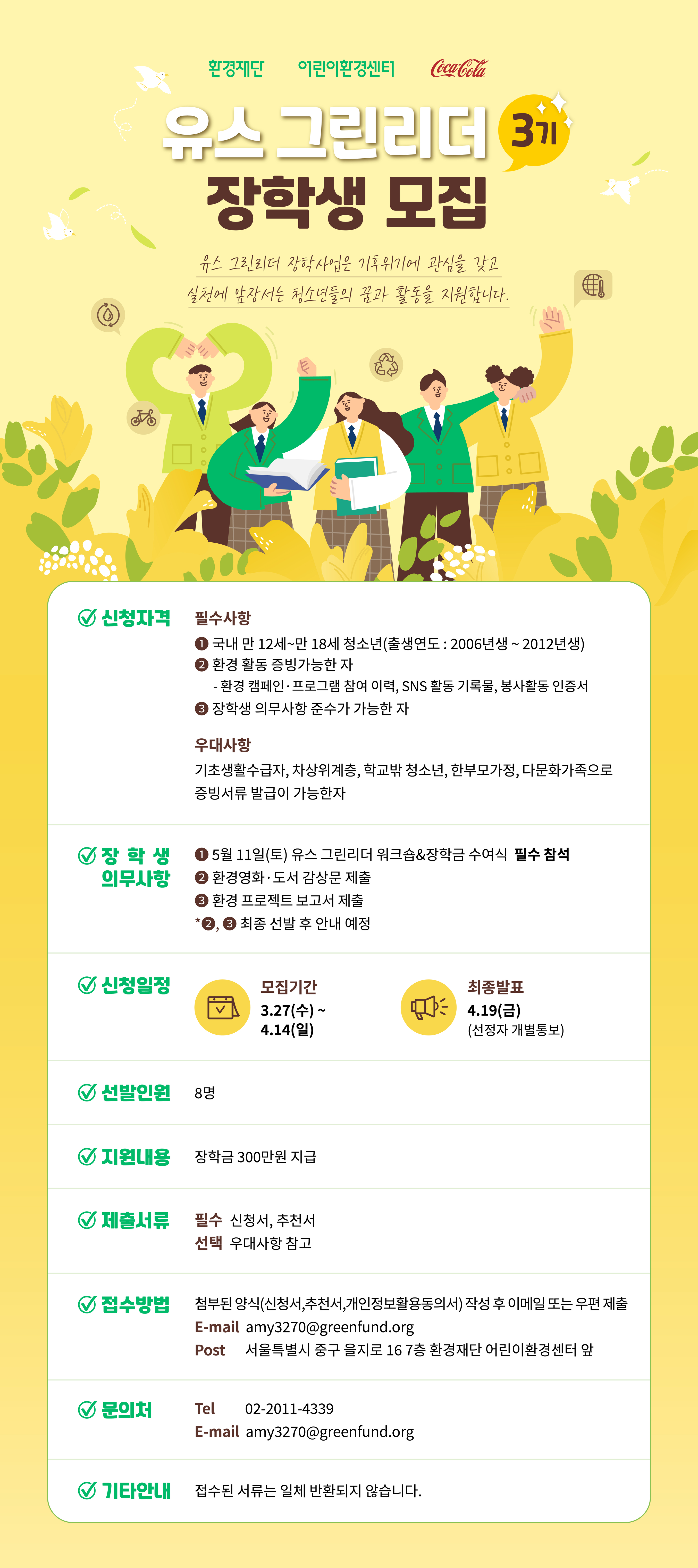 정보공유 [홍보] 청소년 장학사업 <유스 그린리더 3기> 관리자 2024.03.27 1167 이전글 [모집] 느린학습아동 교육지원사업 '천천히 함께' 참여 멘토 모집 목록 다음글 [홍보] 2024년 「제48회 청백봉사상」 공모