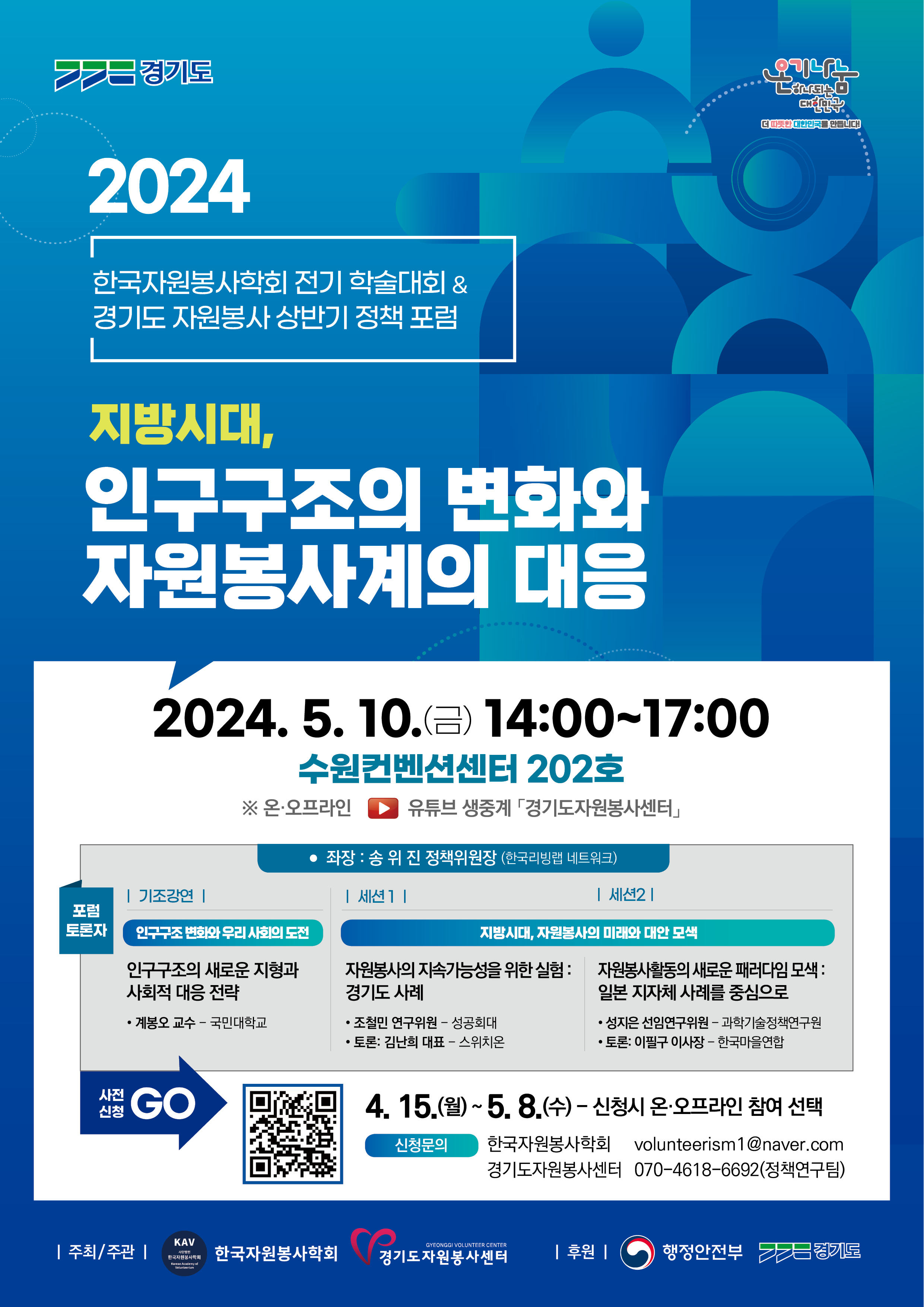 경기도자원봉사센터에서는 한국자원봉사학회와 함께 인구구조 변화에 따른 사회문제 대응을 위한 실천적 공론의 장을 마련하고자 합니다.