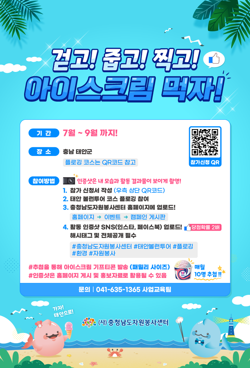 충청남도자원봉사센터는 2007년 태안 유류 유출 사고를 123만 자원봉사자와 함께 극복한 기적을 환경정화 활동을 통해 기념하고자 '자원봉사 희망의 성지 볼런투어 플로깅 이벤트'를 개최하였습니다.