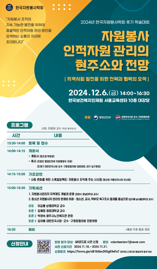 - 문의 : 한국자원봉사학회 (volunteerism1@naver.com)