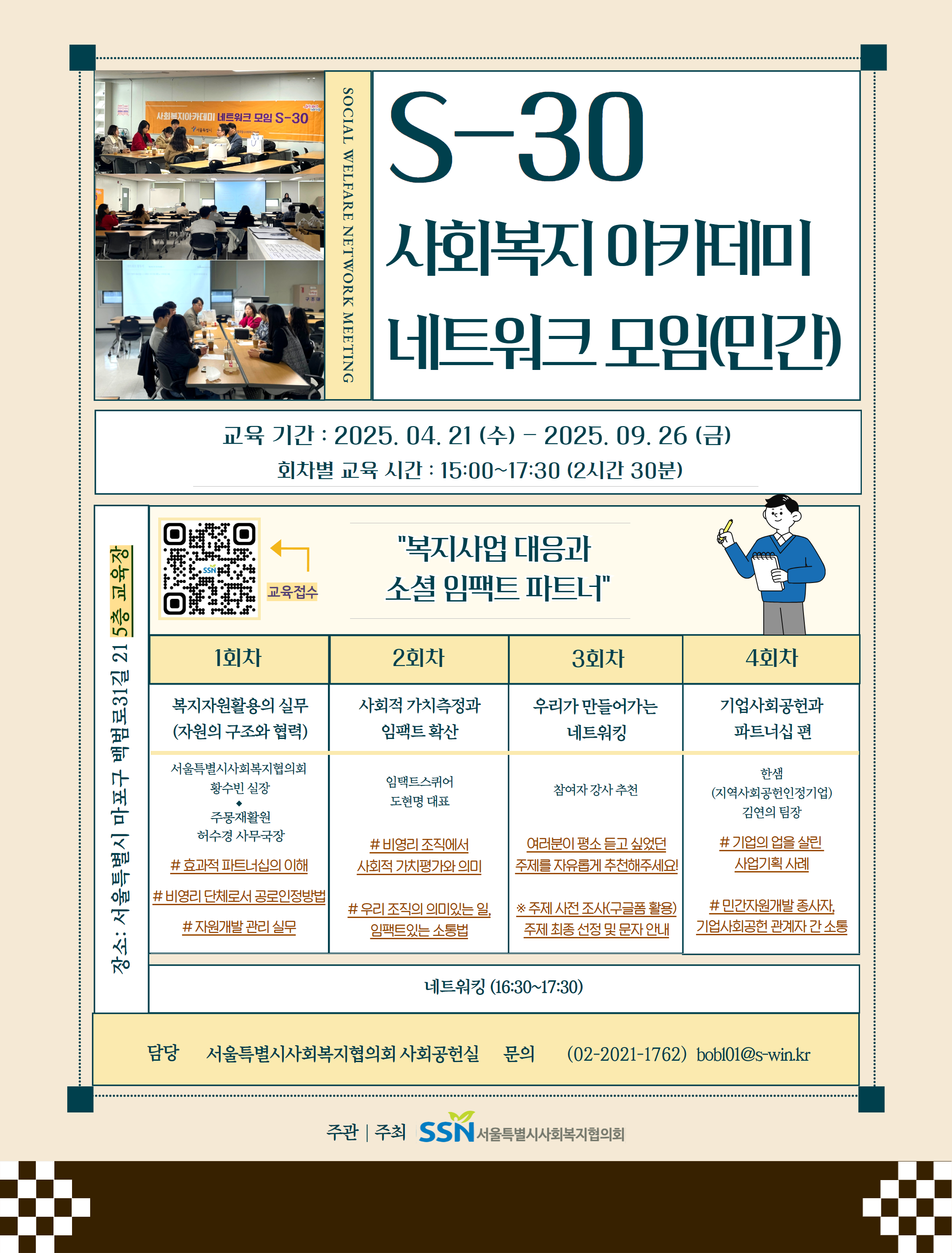 [홍보] 지역복지자원관리 및 활성화를 위한 '사회복지아카데미 네트워크 S-30 : 민간영역편' 참여 안내