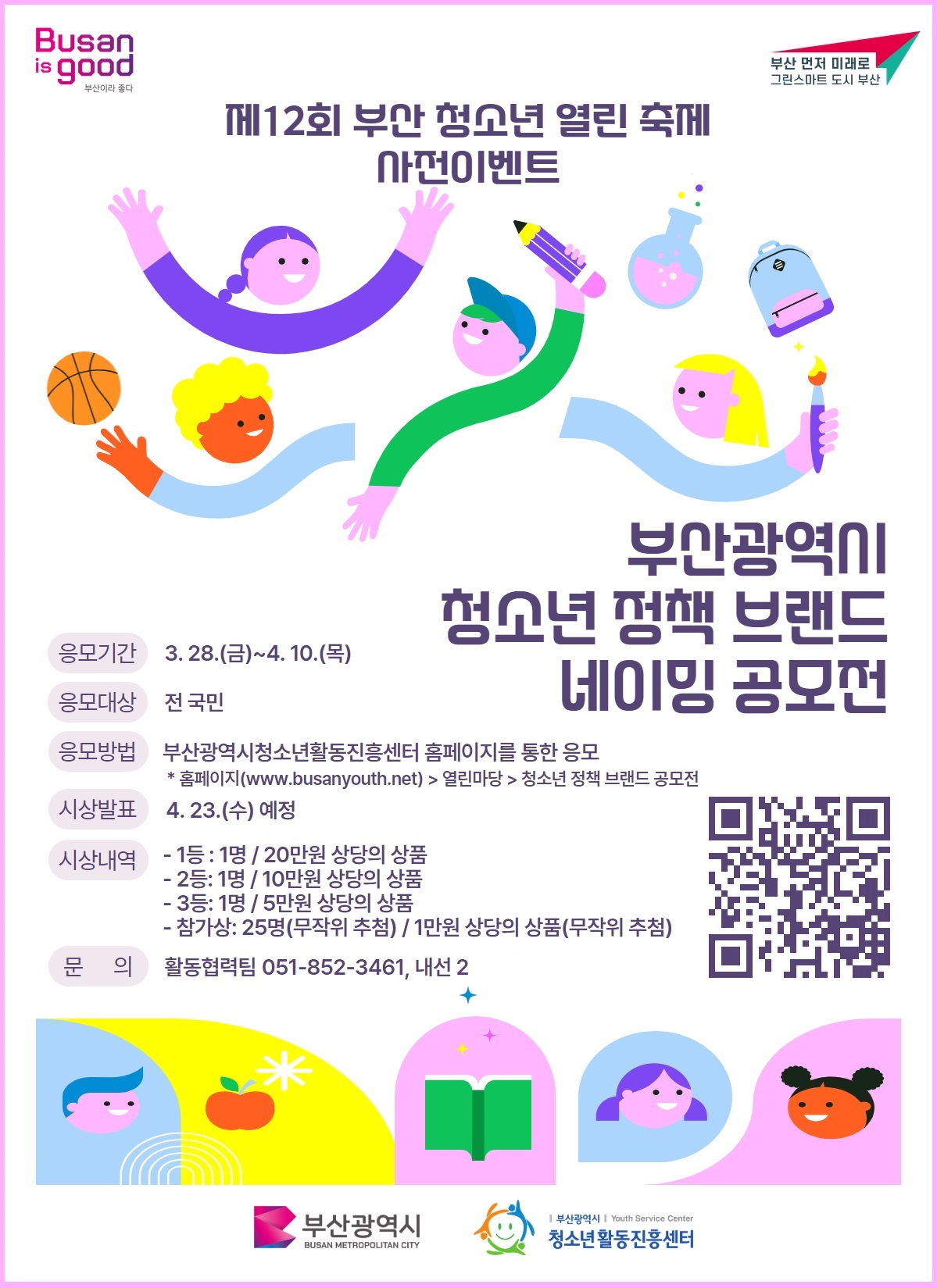 정보공유 [홍보] 부산광역시 청소년 정책 브랜드 네이밍 공모전 참가 안내 관리자 2025.04.01 583 이전글 [홍보] 제8회 대한민국주거복지문화大賞 참가 안내 목록 다음글 [홍보] 제37회 아산상 수상 후보 추천 안내