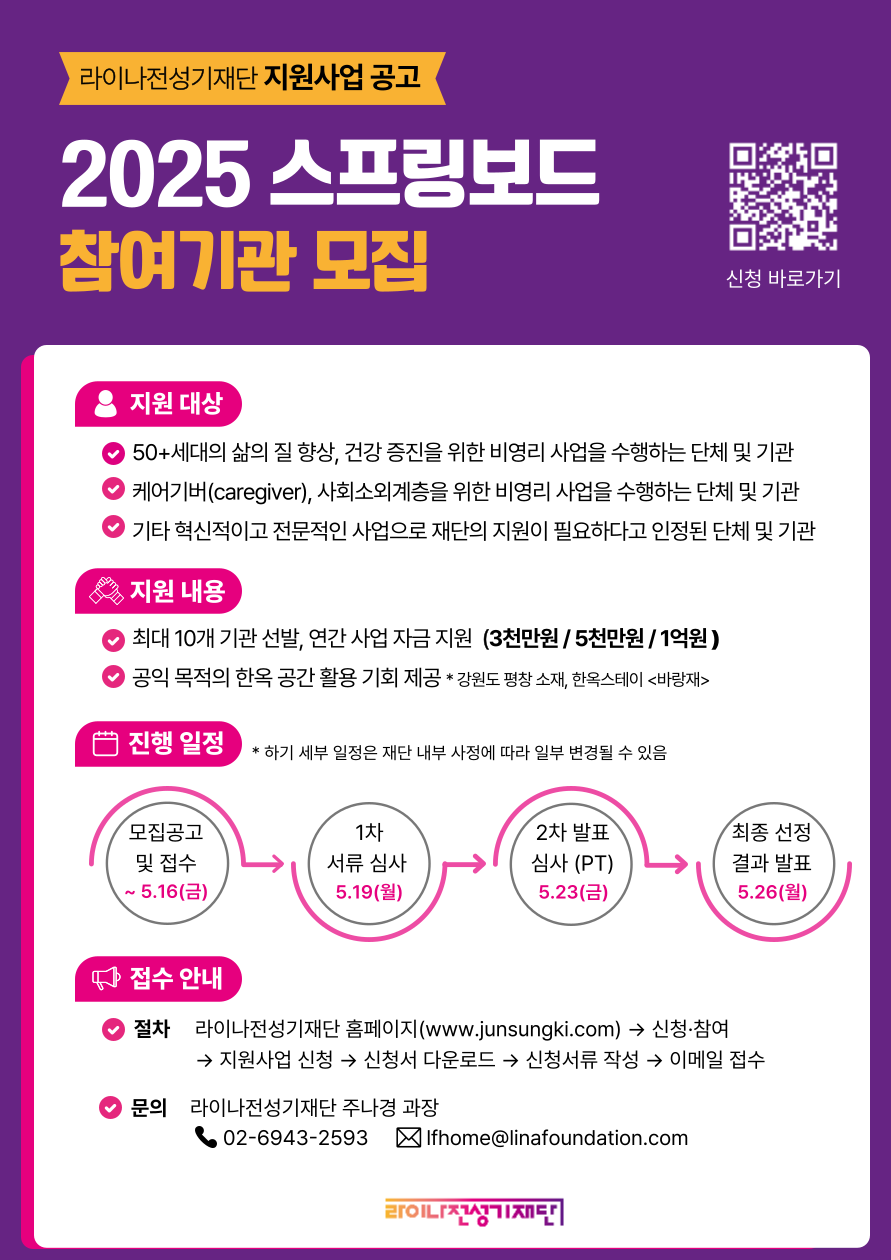 [홍보] 라이나전성기재단 '2025 스프링보드 지원사업' 참여기관 모집 안내