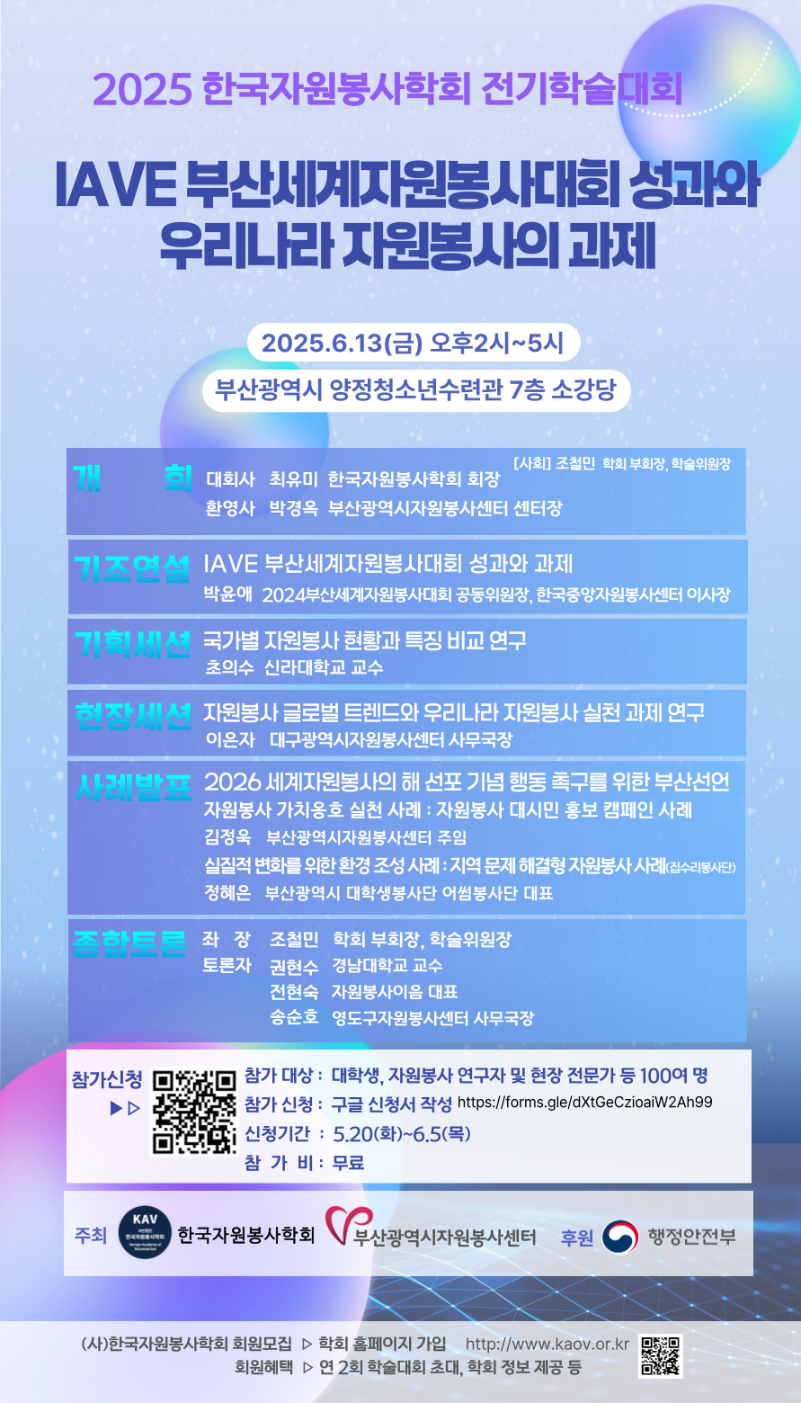 [홍보] (사)한국자원봉사학회 "2025 전기학술대회" 참가 안내