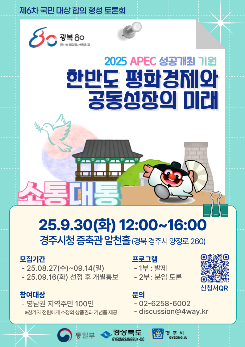 정보공유 [홍보] 2025년 제6차 국민 대상 합의 형성 사업 행사 안내 관리자 2025.08.29 109 이전글 [홍보] '2025 강원방문의 해' 맞이 강원 삼척시 '오고 또 오고' 캠페인 안내 목록 다음글 [홍보] 한국자원봉사센터협회보 제14호 발행 안내