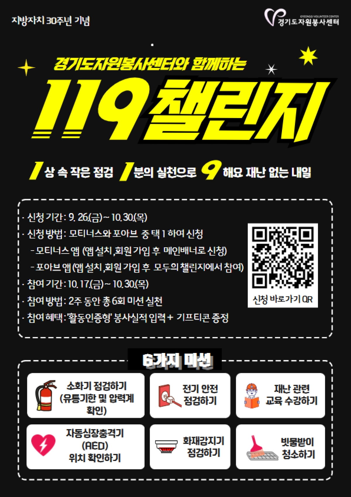 정보공유 [홍보] 2025년 시민참여 공동행동 캠페인 2차 119챌린지 안내 관리자 2025.10.13 223 이전글 [홍보] 산불 피해 극복을 위한 착한 여행 캠페인 진달래심기 2차 행사 참가 안내 목록 다음글 [홍보] 소록도 자원봉사 기록물 수집 공모 안내