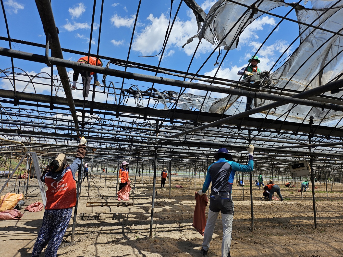- 위 사진: 산불피해지역 의성 단촌면 비닐하우스 정리 자원봉사활동 모습(사진 : 광주광역시자원봉사센터)